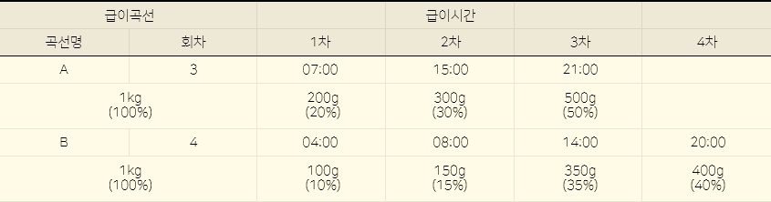 - 입식시 직전 급이한 급이곡선(급이시간 포함) 적용